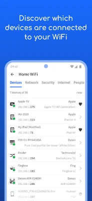 Fing - Network Tools îți oferă control complet asupra rețelei tale. Vezi cine e pe WiFi, detectează furtul de internet, verifică securitatea și măsoară viteza conexiunii. Descoperă toate dispozitivele conectate cu cel mai precis scanner de rețea, pentru o experiență online sigură și optimă.