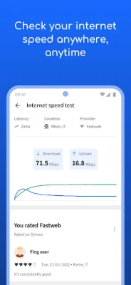 Cu tehnologia sa patentată, de încredere pentru producători de routere și companii antivirus la nivel global, **Fing** descoperă și identifică fiecare dispozitiv conectat la rețeaua ta. Aplicația îți pune la dispoziție instrumente esențiale pentru a rula teste de viteză precise pentru Wi-Fi și date mobile, analizând performanța de upload, download și latența. Poți scana orice rețea Wi-Fi sau LAN pentru a identifica cu precizie adresa IP, MAC, numele, modelul și producătorul fiecărui aparat. De la scanarea porturilor și ping, până la traceroute și căutări DNS, ai toate instrumentele necesare pentru o analiză aprofundată a rețelei și a proprietăților dispozitivelor.