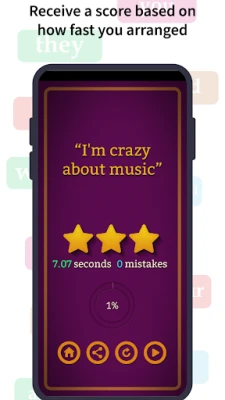 Descoperiți o metodă inovatoare și captivantă de a vă perfecționa limba engleză cu Sentence Master! Indiferent de nivelul dumneavoastră actual, această aplicație unică transformă învățarea într-o experiență ludică. Provocarea constă în a rearanja cuvintele amestecate pentru a construi propoziții corecte și expresii elocvente. Este modalitatea ideală de a vă consolida gramatica, de a stăpâni ordinea corectă a cuvintelor și de a vă dezvolta fluiditatea în comunicare, totul într-un format distractiv și accesibil.