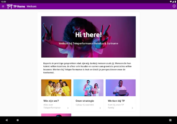 TP Home, aplicația de comunicare de la Teleperformance Benelux & Suriname, te ține la curent cu toate noutățile companiei. Rămâi informat, citește informații esențiale și vizualizează calendarul de activități, totul la îndemână, direct de pe telefonul tău.